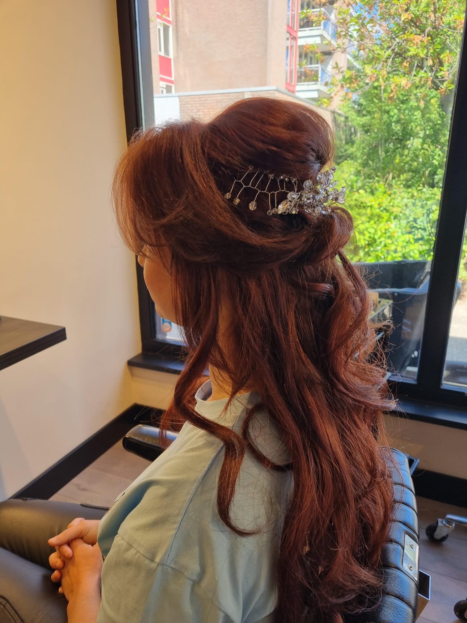 De invulling en prijs van een bruidsarrangement zijn afhankelijk van jouw wensen. Een proefsessie vindt altijd plaats in de salon, zodat we samen rustig kunnen kijken wat het beste bij je past. Op de trouwdag zelf is het mogelijk dat ik op locatie kom om je haar en make-up te verzorgen.
